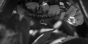 A bee on a hanging sunflower, taken in Danville, IN at Beasley's Orchard